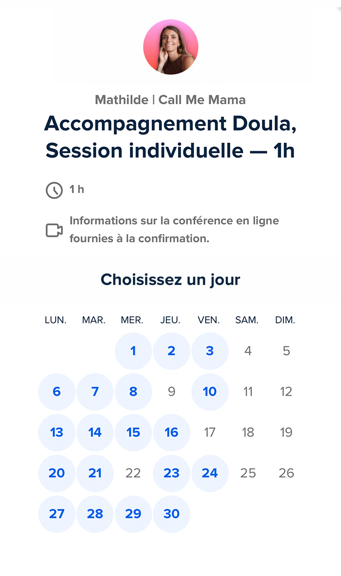 Des rendez-vous en visio, depuis le confort de chez soi, pour un accompagnement personnalisé, et des outils concrets pour se sentir soutenue, alignée et prête pour le jour J.